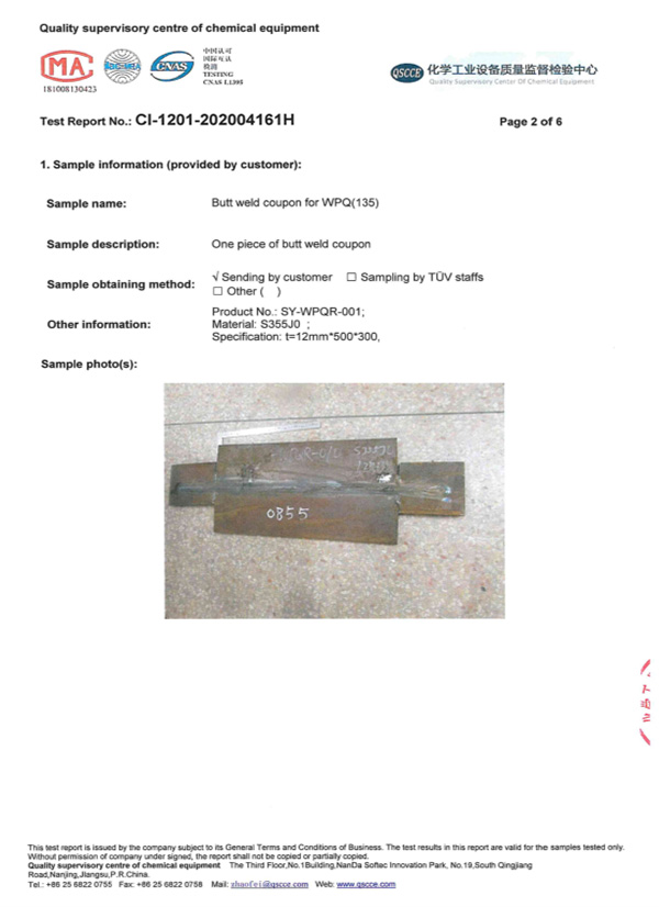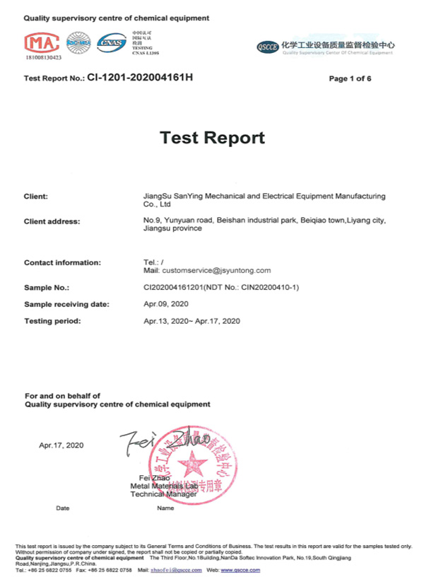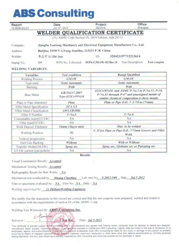 Has fully passed the ISO9001-2008, 24001-2004 and 28001-2011 three-body system certification. Some employees have also obtained the internationally recognized welding quality of Ebisel stainless steel and Q345 steel.